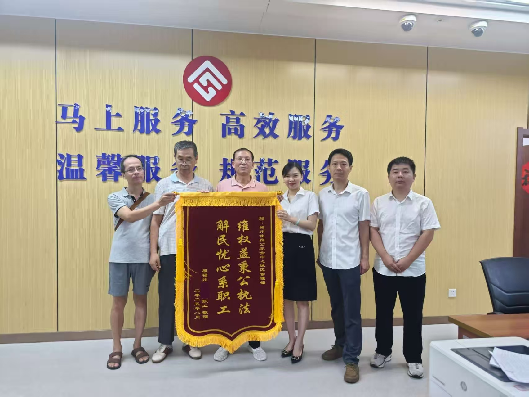 2025年8月19日,福州住房公积金中心城区管理部收到一份特别的礼物——一面绣有“维权益秉公执法 解民忧心系职工”的锦旗。锦旗加冕,是汗水与坚持的璀璨回响。这面锦旗的背后,不仅承载着160名职工维权成功的喜悦,更诉说着一段公积金执法为民的暖心故事。