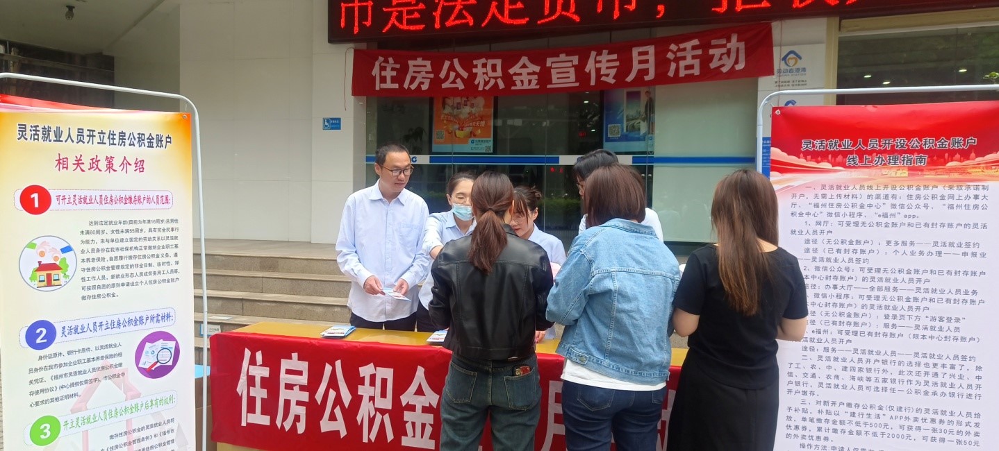 近期,以“‘金’心为民,筑梦榕城”为主题的住房公积金宣传月活动正在榕城如火如荼地展开,为进一步扩大住房公积金制度覆盖面,让更多灵活就业人员了解并享受到公积金政策的实惠,福州住房公积金中心永泰管理部紧跟形势发展和民众需求,分别在永泰建行大楼门口前广场和樟城农贸市场口,开展了针对灵活就业人员缴存使用公积金政策的专题宣传活动。