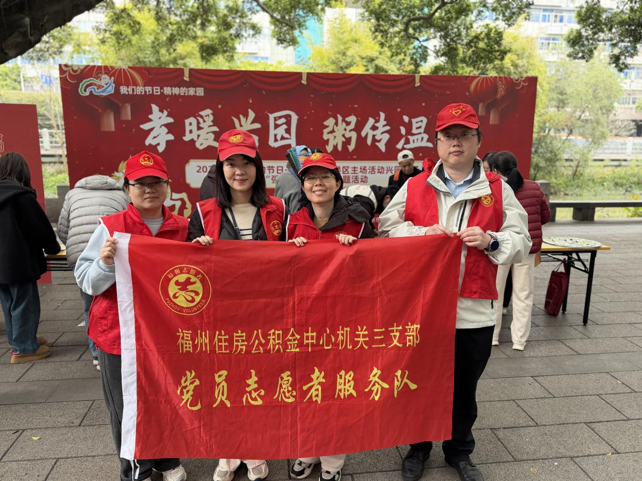 拗九飘香,孝润闽都。在福州传统民俗节日拗九节来临之际,福州住房公积金中心机关三支部联合共建社区福州兴园社区,在白马河公园开展“孝暖兴国,粥传温情”主题志愿服务活动,以一碗热粥传递敬老心意,弘扬孝老爱亲传统美德。
