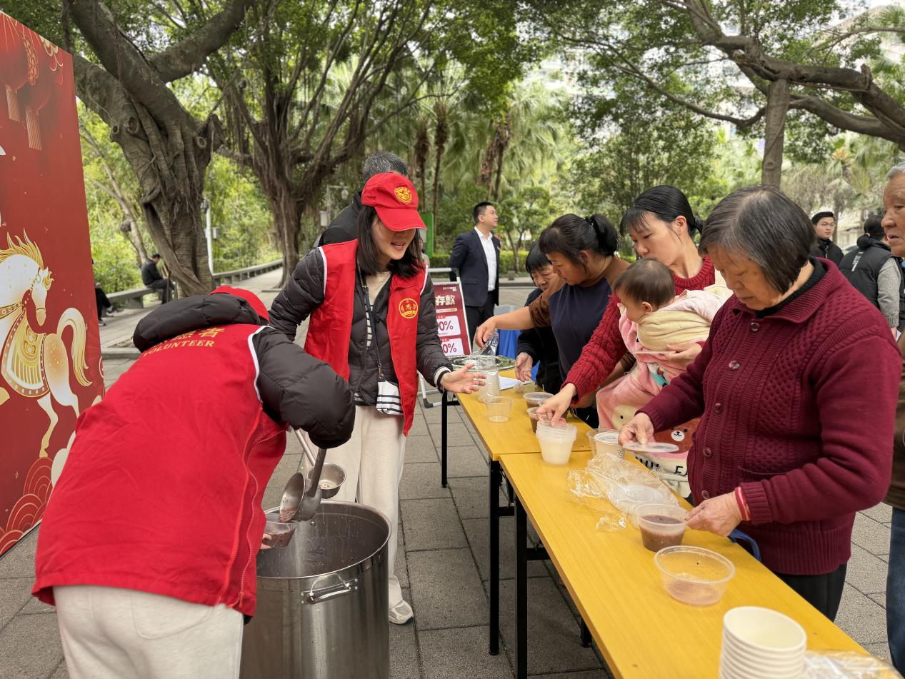 活动现场暖意融融。党员志愿者与社区工作人员精心准备食材,将糯米、红枣、桂圆、花生等食材文火慢熬,熬制出香甜软糯的拗九粥。粥香四溢,吸引不少市民驻足围观、点赞。志愿者分工协作、秩序井然,将一碗碗热气腾腾的拗九粥递到现场市民手中,与他们亲切交谈,询问身体状况和生活情况,倾听生活点滴,一句句暖心话语、一次次真诚问候,让现场欢声笑语不断,处处洋溢着温馨和谐的氛围。此次活动,既让大家感受到党组织的关怀,也以实际行动传承了闽都孝善文化。党员志愿者们以志愿服务践行初心使命,充分展现了公积金队伍心系群众、弘扬美德的良好风貌。