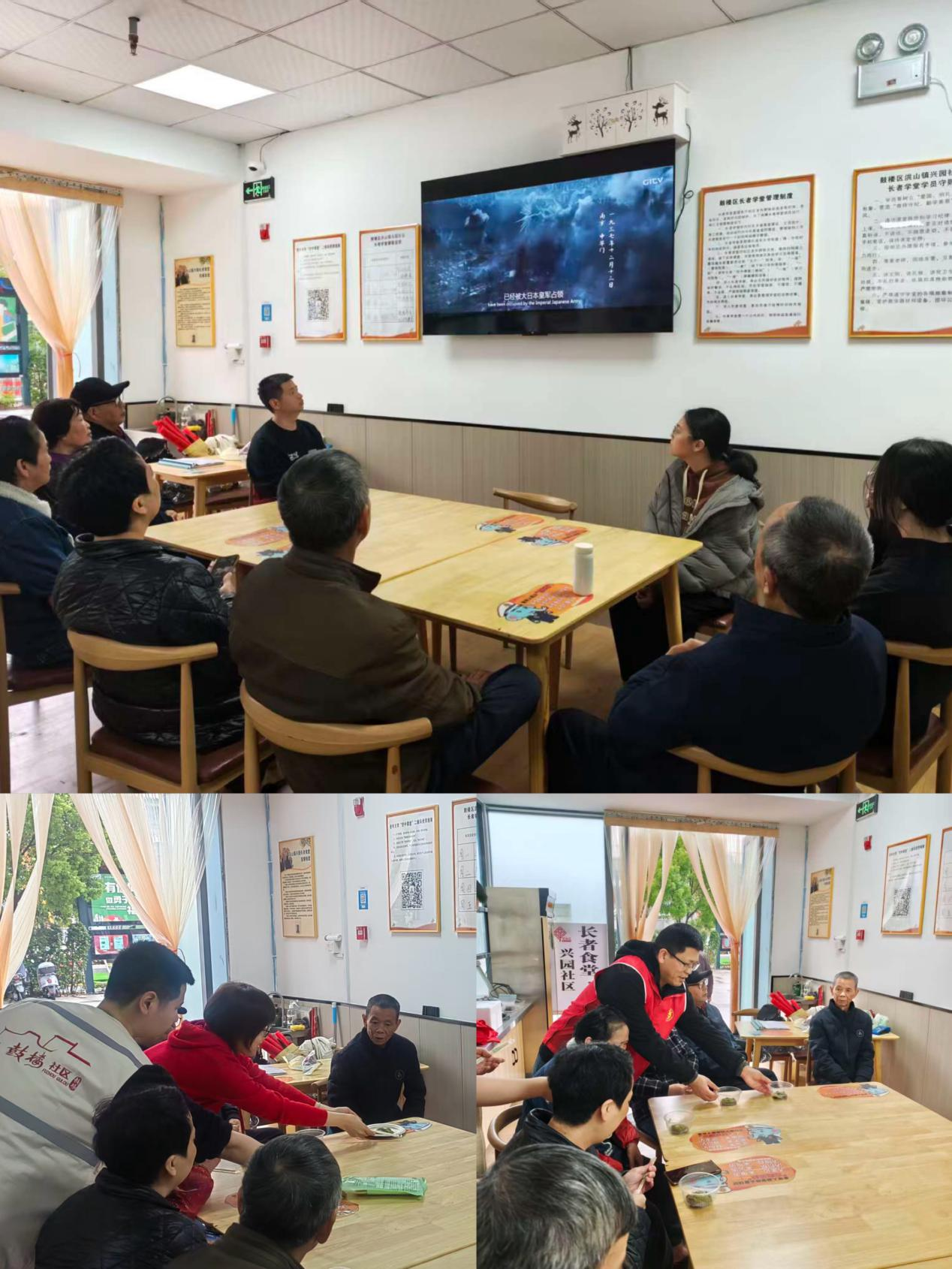 活动现场,大家齐聚社区长者食堂,怀着肃穆与崇敬的心情,一同观看抗战影片《南京照相馆》。影片以厚重的历史视角为切入点,通过细腻的镜头语言,展现了革命先烈们在民族危亡之际,不畏强权、坚守信仰、为国家独立和人民解放浴血奋战的峥嵘岁月。影片中感人至深的画面与英勇无畏的抗争精神,深深触动在场每一位观影者的内心,深切感悟如今和平幸福生活的来之不易,更以此方式缅怀为国家和民族献出生命的英烈们。