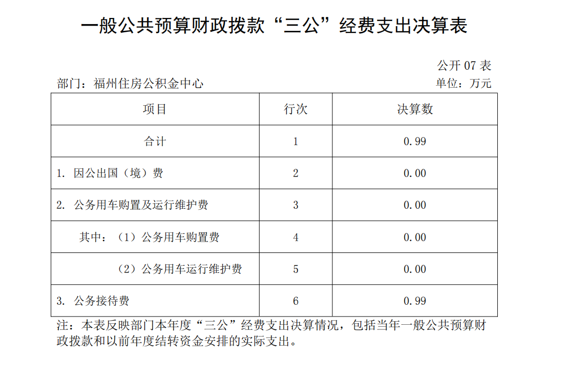 2023年福州住房公积金中心一般公共预算财政拨款“三公”经费支出决算表